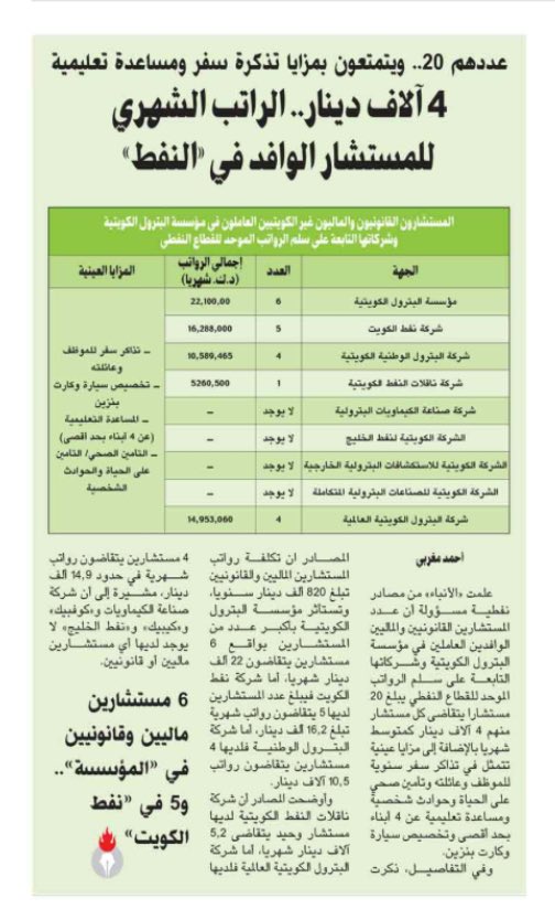 كان الإخبارية On Twitter 4 آلاف دينار الراتب الشهري للمستشار الوافد في النفط